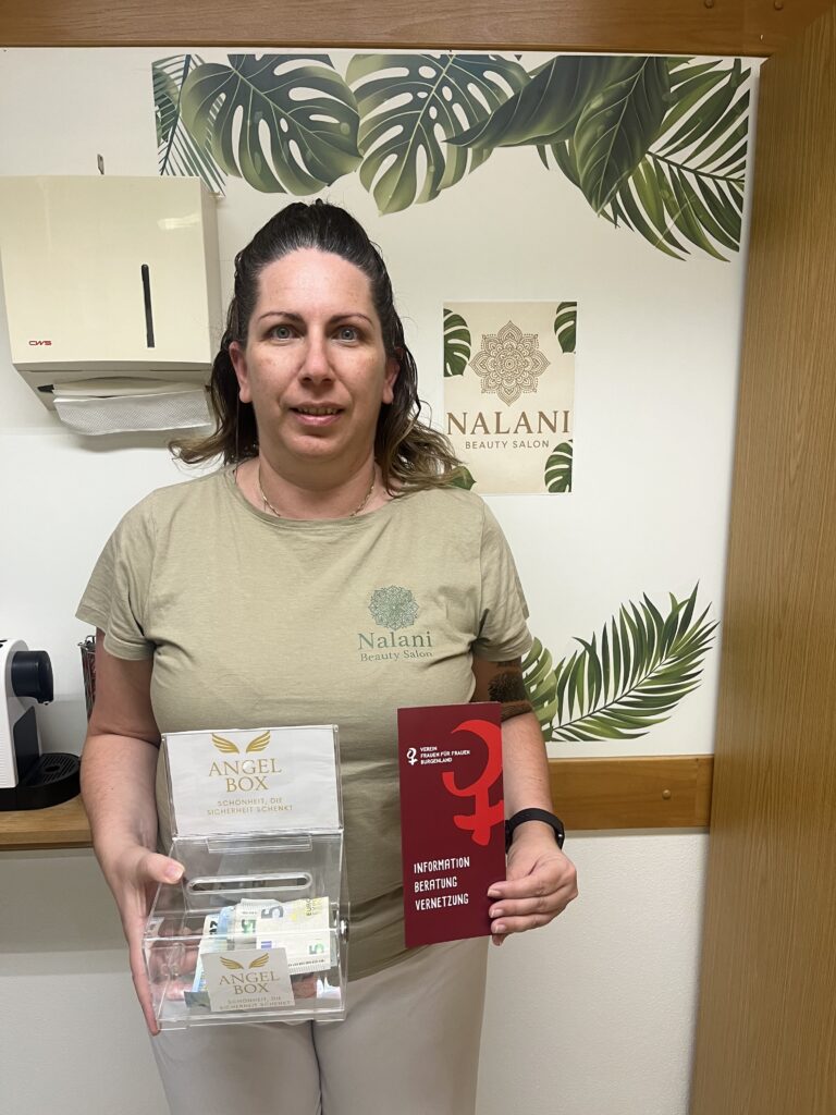 Diana Benny, die Inhaberin des Beautysalons Nalani, zeigt ein großes Herz: Sie hat eine Spendenaktion ins Leben gerufen, bei der ein Teil des Erlöses jeder „Angel-Glow-Gesichtsbehandlung“ an die Frauen-, Mädchen- und Familienberatungsstelle Güssing gespendet wird. Mit ihrem Engagement unterstützt sie unsre Arbeit auf wertvolle Weise und setzt ein starkes Zeichen für Zusammenhalt und Hilfsbereitschaft.