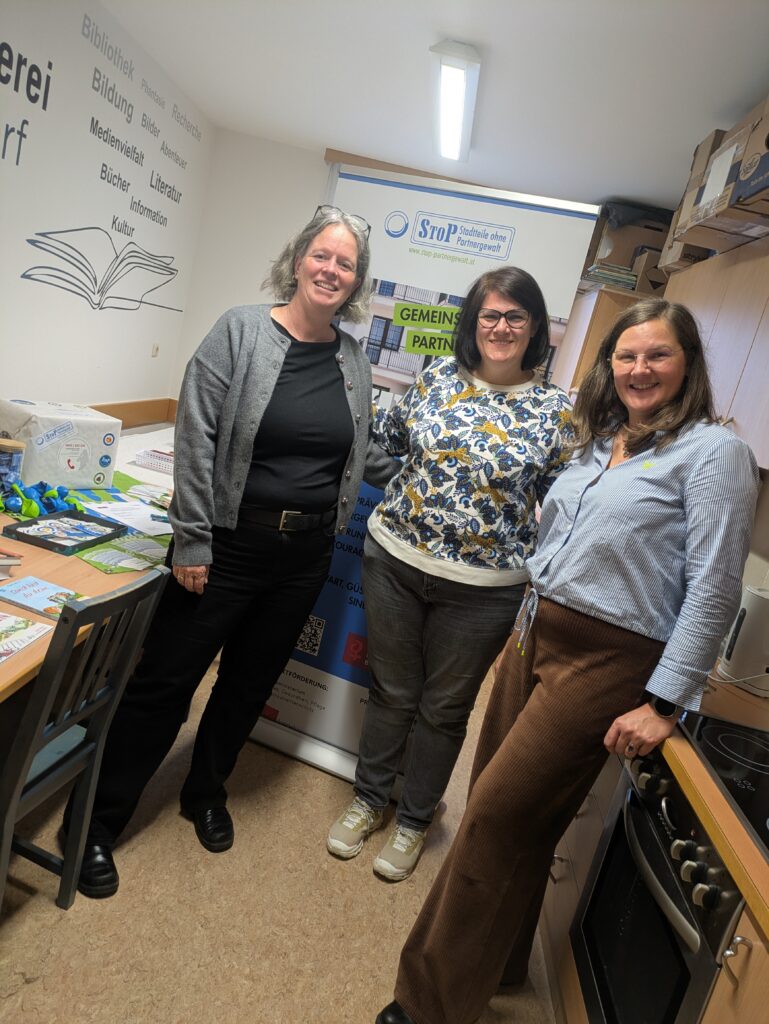 Anna Drenig, Michaela Bacher und Iris Ablasser in der Stadtbücherei Jennersdorf